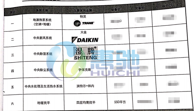 家居集成系統:特靈地源熱泵系統、大金新風系統、凈水系統、中央除濕、中央除塵系統。
