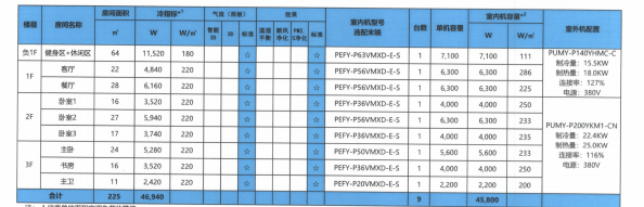 三菱機(jī)電中央空調(diào)系統(tǒng)技術(shù)配置表