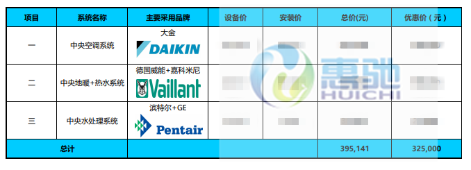 家居集成系統(tǒng): 大金中央空調(diào)VRV-P系列、德國(guó)威能/嘉科米尼 中央地暖/熱水系統(tǒng)、濱特爾中央水處理