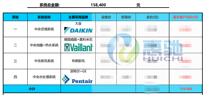 家居集成系統(tǒng): 大金VRVP系列中央空調(diào) 布朗中央新風(fēng)系統(tǒng) 德國(guó)威能中央水地暖 濱特爾中央凈水