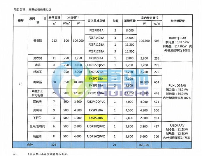 虹橋機(jī)場(chǎng)店空調(diào)系統(tǒng)技術(shù)配置表