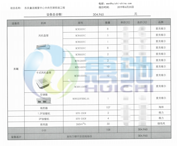 項(xiàng)目內(nèi)容:麥克維爾風(fēng)機(jī)盤管設(shè)備安裝調(diào)試工程