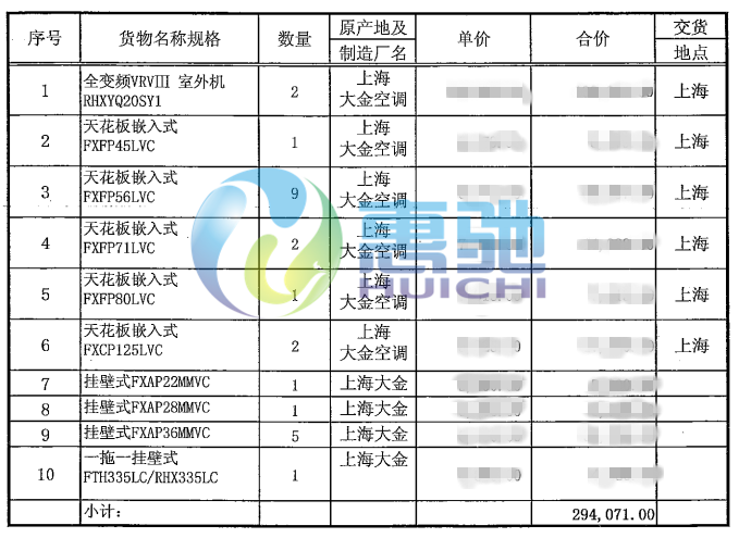項目內容:大金VRV-X系列商用多聯(lián)機