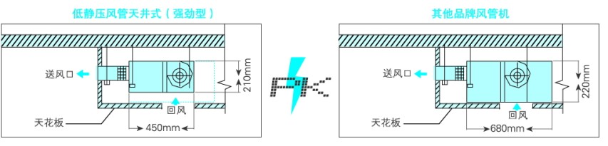 美的低靜壓風(fēng)管機(jī)機(jī)身厚度最薄處僅為210mm,深度最小僅為450mm,均小于行業(yè)水平,可為你騰出更多商住空間。