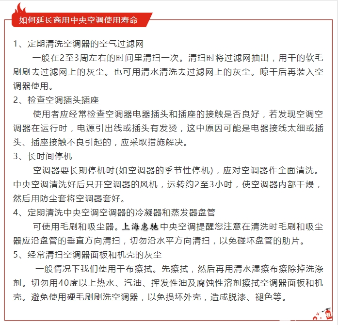 我們都經(jīng)常見到中央空調(diào),商場、超市等等大型場所,不同于家用小型中央空調(diào),商用中央空調(diào)需要馬力十足。大家都知道商用中央空調(diào)實(shí)用的時間比較長。那么,如果在這么長的時間內(nèi)保證商用中央空調(diào)的制冷、制暖效果應(yīng)該如何做呢?接下來惠馳小編就來給大家簡單介紹一下商用中央空調(diào)有哪些分類以及如何延長商用中央空調(diào)使用壽命。