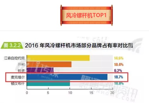 風(fēng)冷螺桿機以18.7%的市場占有率蟬聯(lián)行業(yè)第一