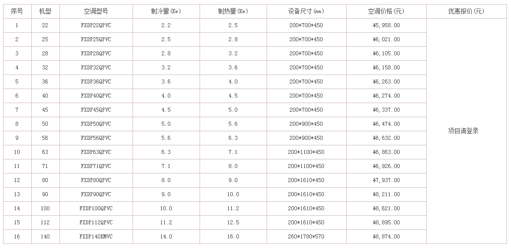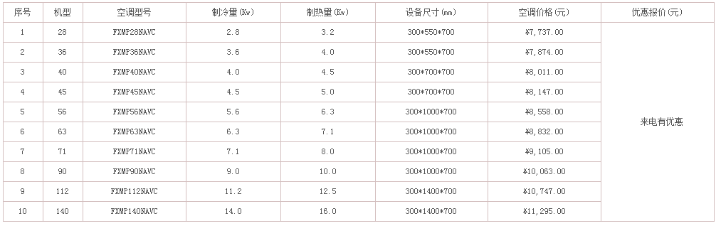 惠馳空調(diào)電器作為大金空調(diào)的經(jīng)銷商,有能力也有義務(wù)為大家解決這個急切的問題。下面列出了不同類型和不同型號的大金中央空調(diào)的價格,有需要的可以聯(lián)系惠馳空調(diào),隨時為您解答。