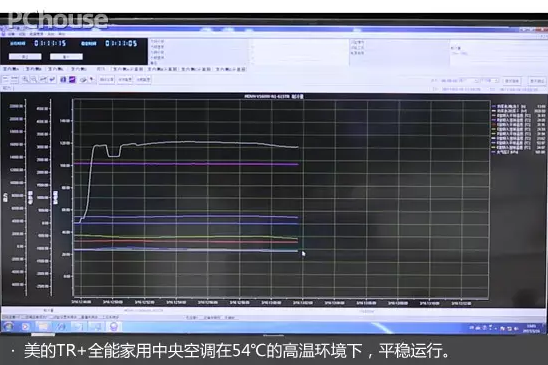 【高溫時(shí)的制冷效果】在溫度為54℃的高溫環(huán)境實(shí)驗(yàn)室當(dāng)中,開(kāi)啟美的TR+全能家用中央空調(diào),制冷約30分鐘。監(jiān)測(cè)結(jié)果,美的TR+全能家用中央空調(diào)的制冷能力能維持在平穩(wěn)的水平,說(shuō)明其在54℃的高溫環(huán)境下,平穩(wěn)運(yùn)行,性能更加穩(wěn)定。