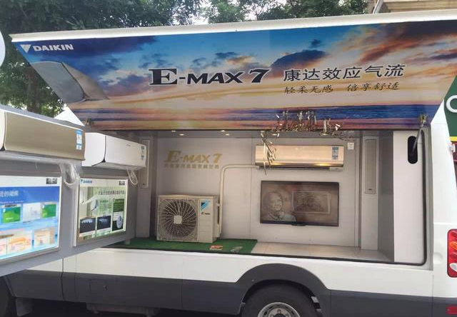 如果只是一些產(chǎn)品的展示,很難呈現(xiàn)出中央空調(diào)的效果。安裝有實(shí)體機(jī)器的移動(dòng)展示車(chē),就相當(dāng)于把空調(diào)的實(shí)景體驗(yàn)廳開(kāi)到了小區(qū),讓消費(fèi)者自己去體驗(yàn)產(chǎn)品到底好在哪里。