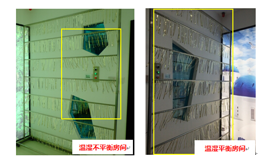 為了更好地檢測中央空調(diào)的出風(fēng)和氣流,在正對空調(diào)出風(fēng)口的對面拜訪了一個(gè)流蘇架,這樣就能很清楚地看出空調(diào)的風(fēng)向和風(fēng)速了。
