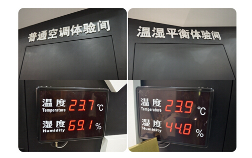 普通空調(diào)體驗(yàn)間的溫度與大金溫濕平衡體驗(yàn)間的溫度幾乎一致,但是濕度的差異卻相當(dāng)大,在普通空調(diào)體驗(yàn)間由于過高的濕度讓人感覺十分不適,有種悶熱的感覺;而在大金溫濕平衡體驗(yàn)間,這樣的溫度和濕度下卻感覺很涼爽甚至有些冷。