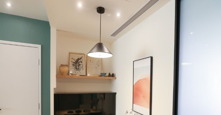 設(shè)計(jì)師通過多番現(xiàn)場勘察,最終主臥、次臥、客餐廳都決定選用大金超薄風(fēng)管式空調(diào),超薄風(fēng)管機(jī)機(jī)身很小巧,安裝很緊湊,對于一些層高不是很高的戶型也很適合。